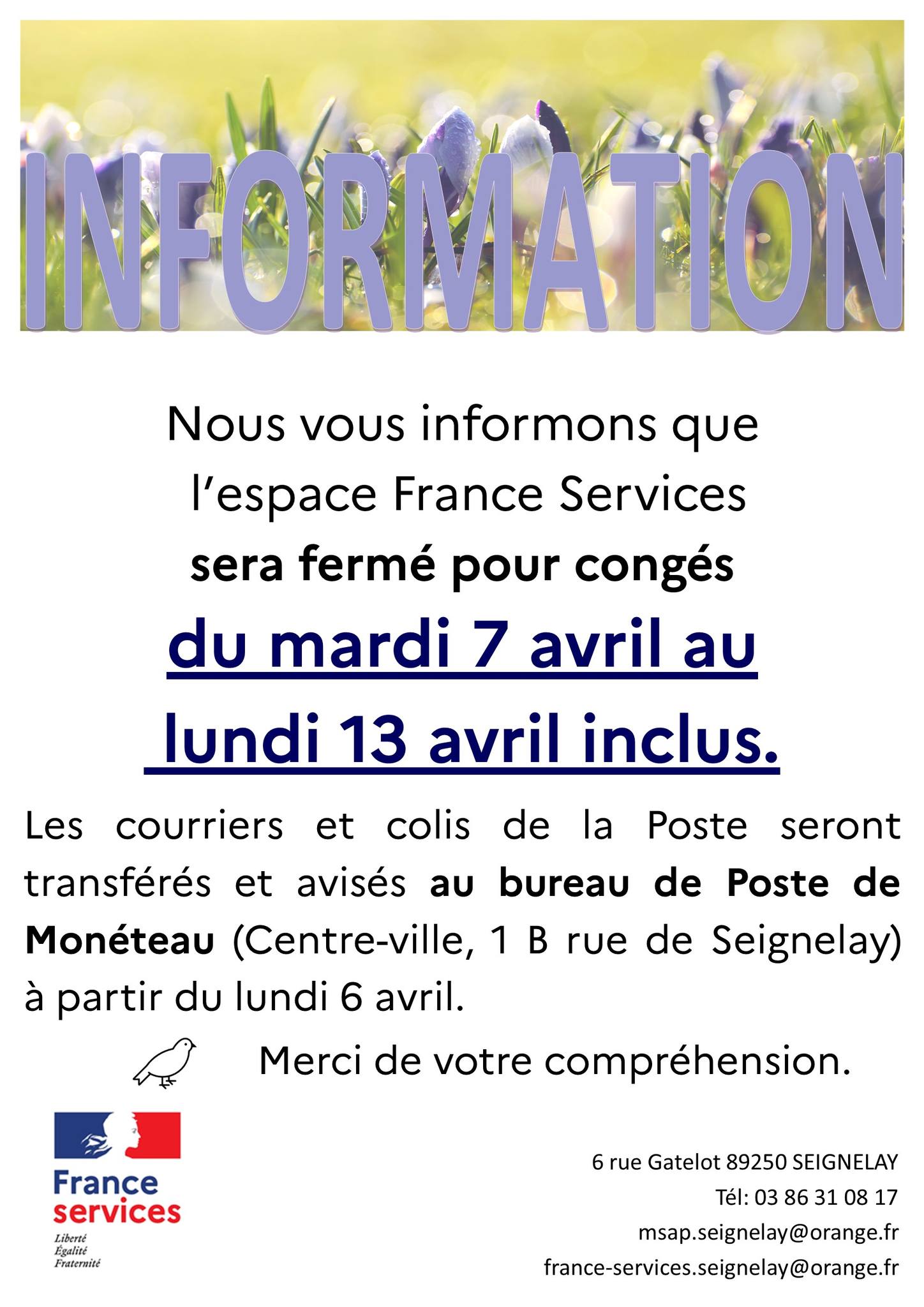 La commune de Seignelay dispose d’un service d’instruction des titres sécurisés (Carte Nationale d’Identité et Passeport) depuis le mois de juin 2023 au sein de la France services de Seignelay (6 rue gatelot).