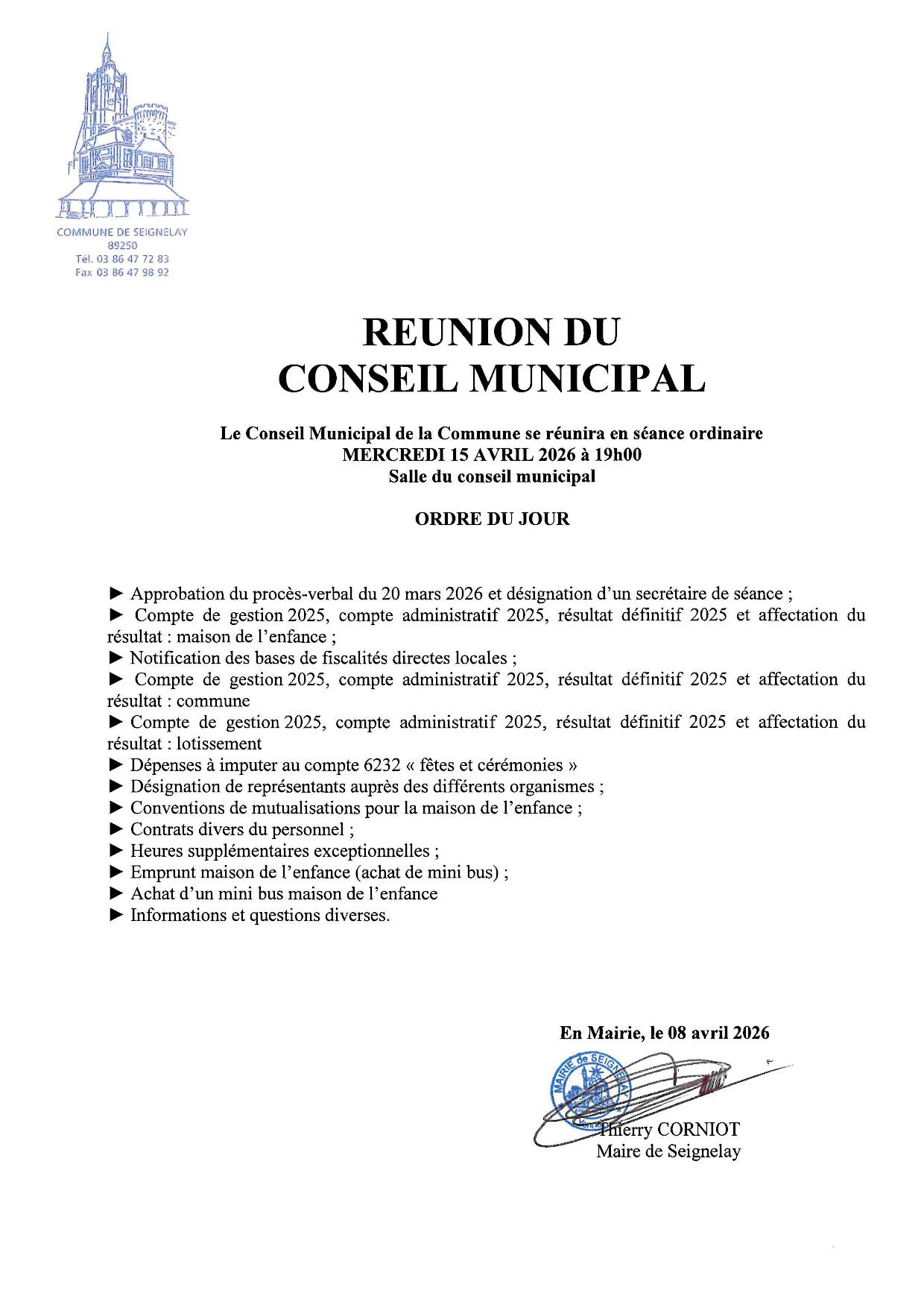 Prochain conseil municipal :