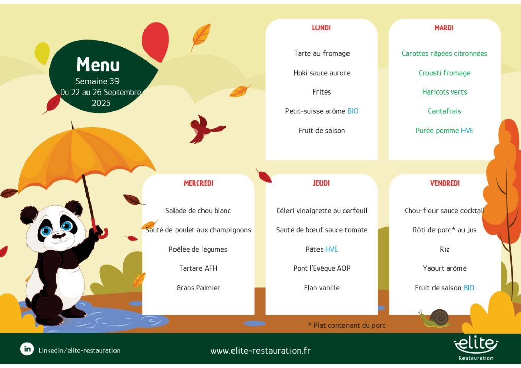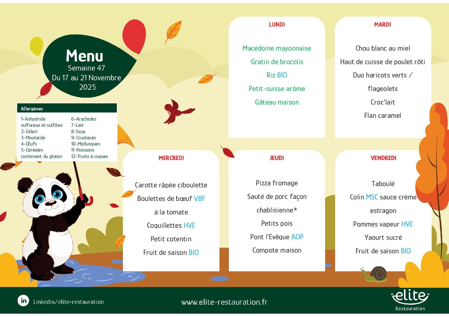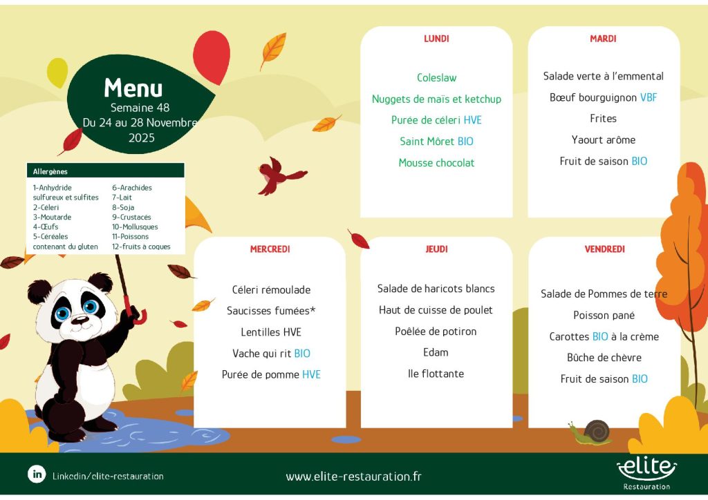 Les repas sont préparés à la maison de l’Enfance, sur la base de menus élaborés selon un plan alimentaire respectant les règles de nutrition et d’équilibre adaptés aux enfants.
